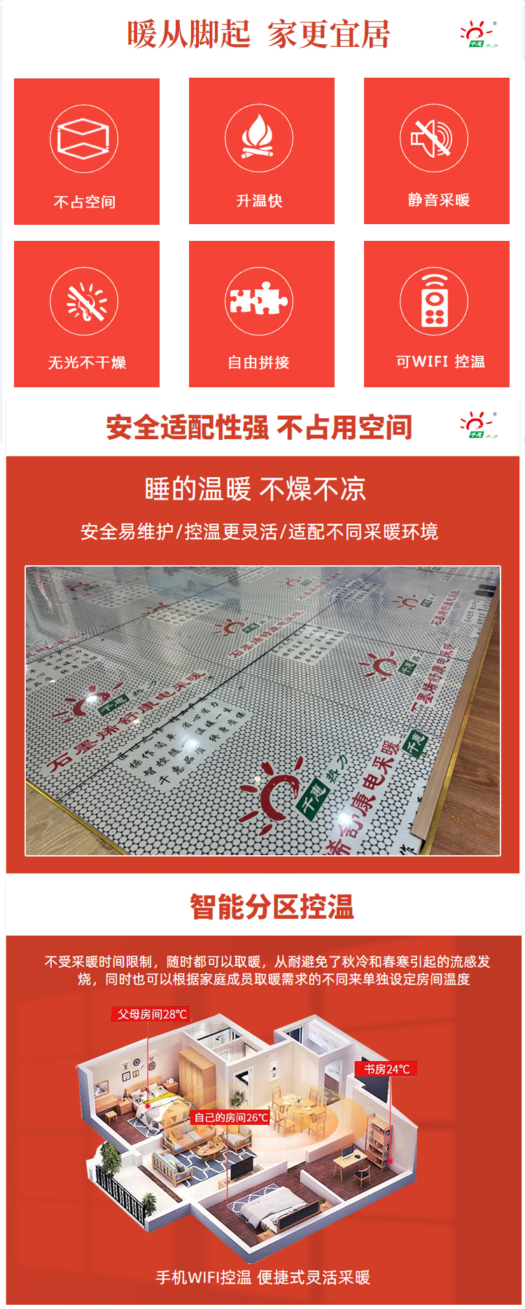 石墨烯舒康电热板千惠热力2025年新品推出,电热板通电升温快,智能控温,性能稳定.电热板干铺式采暖